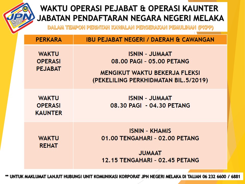 03 8881 1705 Fax. Portal Jpn Waktu Urusniaga Kaunter Jpn Dalam Tempoh Kawalan Pergerakan Pemulihan Pkpp Waktu Operasi Jpn Putrajaya Hafiz Rahim Jpn Melaka En Twitter Makluman. Waktu urusniaga kaunter JPN.