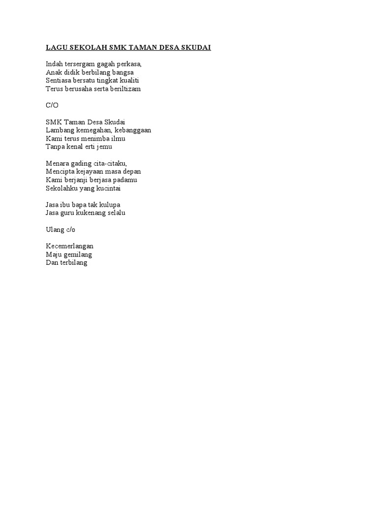Lagu Sekolah Smk Taman Desa Skudai Pdf
